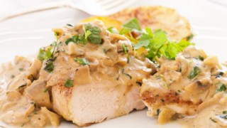 Stir cream into the pan, scraping up brown bits. Mix in mustard and tarragon. Cook and stir 5 minutes, or until thickened. Return chicken to skillet to coat with sauce. Drizzle chicken with remaining sauce to serve.
