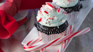 Make Frosting: In a small bowl, beat the coconut cream with an electric mixer until smooth. Add 1/4 cup softened butter and continue to beat another minute. Add the powdered erythritol; beat another minute then add peppermint extract and food coloring as desired (optional; red is pretty as pictured and green is festive with the red and white candies). Adjust for sweetness by adding a pinch of stevia if desired. Frost cupcakes using a piping bag or by hand. Sprinkle with crushed peppermint candies.
