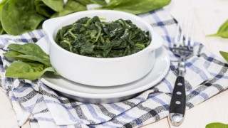 Heat the extra virgin coconut oil in a wok, or large frying pan over medium-high heat. Add the mushrooms and onion, and saute until they are about halfway done. Dump in the spinach, and liberally sprinkle with garlic powder. Fry until the spinach has wilted, about 5 to 7 minutes.