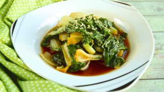 Heat extra virgin coconut oil over high heat. Saute bok choy stalks in hot oil until just beginning to soften, about 1 minute.