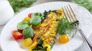 After eggs appear to be cooked ½ way through, fold omelet in half and cook until center reaches desired consistency.