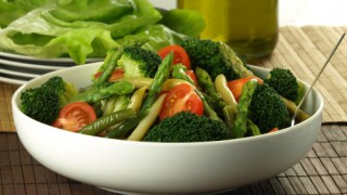 Toss the roasted green beans and asparagus with red onion, cherry tomatoes, and parsley in a large bowl; season with kosher salt and black pepper.