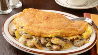 Beat egg whites till they form peaks then fold into yolk mixture and gentle toss in mushrooms and onions.