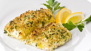 Trim fish, then season on both sides. Heat oil in a pan (which can be transferred to the oven.) Fry steaks on one side until crisp underneath. Using a pastry brush, paint Maille(R) Dijon Originale mustard over the top side of the cod.