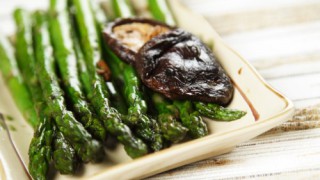 Place the asparagus and mushrooms in a bowl. Drizzle with the extra virgin coconut oil, then season with rosemary, salt, and pepper; toss well. Lay the asparagus and mushrooms out on the prepared pan in an even layer. Roast in the preheated oven until the asparagus is tender, about 15 minutes.