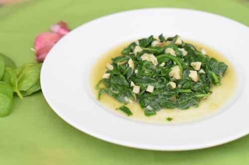 Heat the butter in a skillet over medium heat. Stir in the garlic; cook and stir until the garlic is fragrant, about 2 minutes. Add the spinach a few handfuls at a time, stirring until wilted before adding more, about 5 minutes. Stir in the lemon juice, and season with garlic salt.